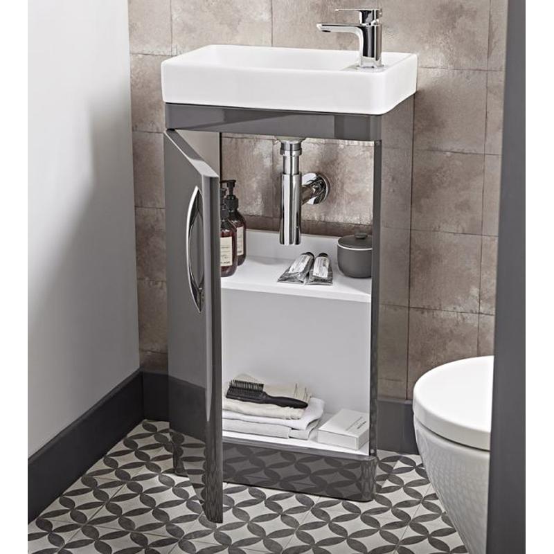 A compact and slimline cloakroom from our popular Compass range. In a minimal, contemporary style, this petite unit is a great way to add additional storage space to your bathroom without compromising on space. With soft close doors and plenty of shelving space for bathroom essentials.