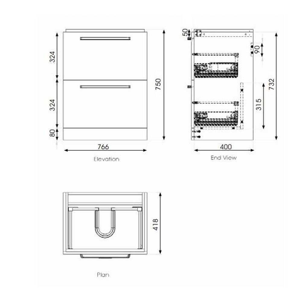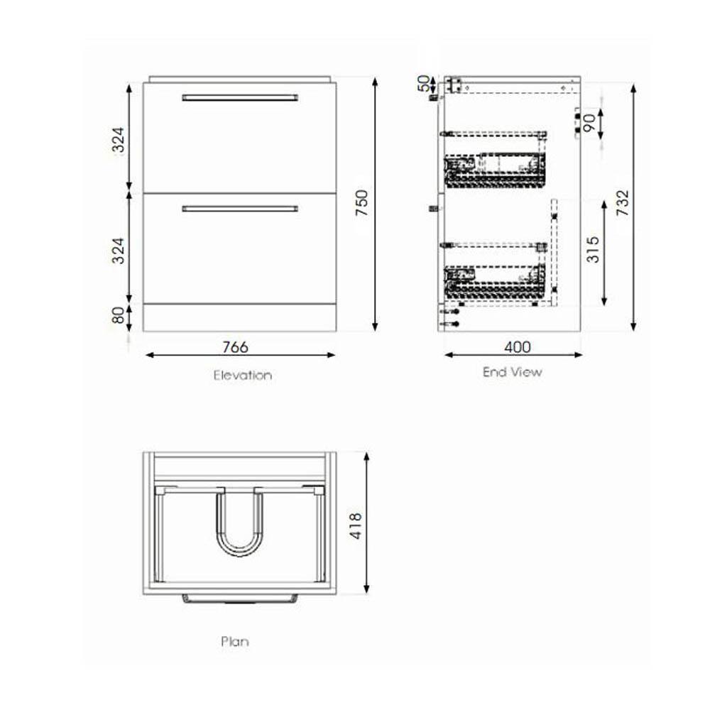- Unit Dimensions: Height: 750mm x Width: 569mm x Depth: 418mm (Excl. Basin), Height: 750mm x Width: 766mm x Depth: 418mm (Excl. Basin)