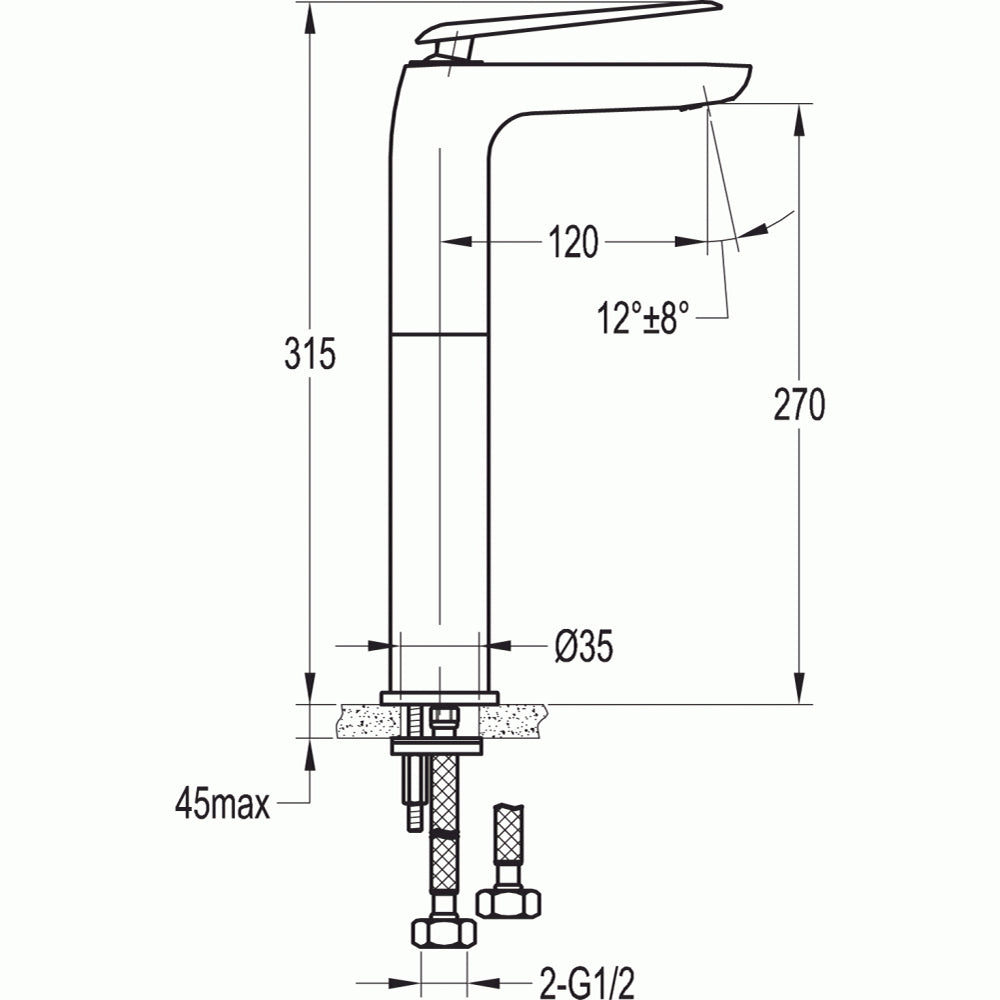 Allore tall 315mm mono basin mixer with slotted clicker waste set
