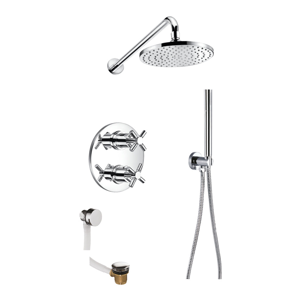 XL thermostatic 3-outlet shower valve with fixed head, handshower kit and bath overflow filler
