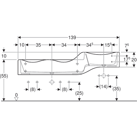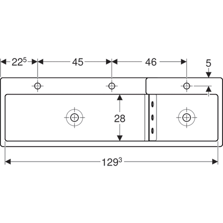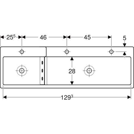 • 430300016: Bambini play and washspace, for tHRee washbasin taps, lower basin on the left: B=135cm, T=41.5cm, Tap hole=centred, left and right, Overflow=without, white alpine