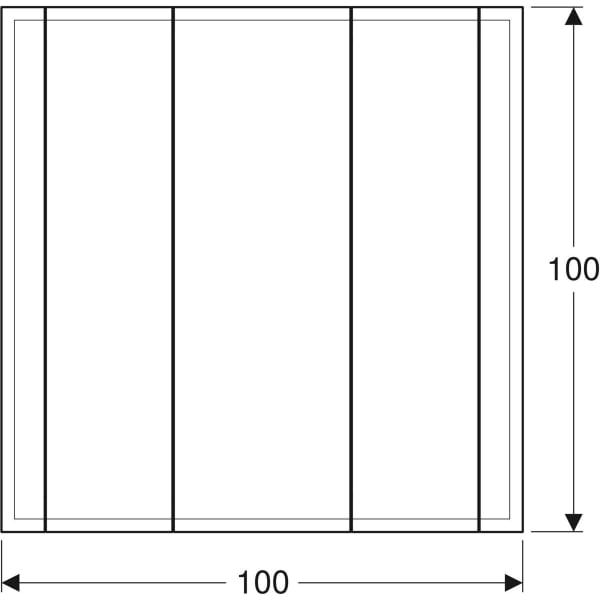 • 500.485.00.1: ONE mirror cabinet with lighting, with three doors: B=100cm, H=100cm, T=16cm, Plug type=CEE 7/16, melamine / aluminium brushed, inside and outside mirrored