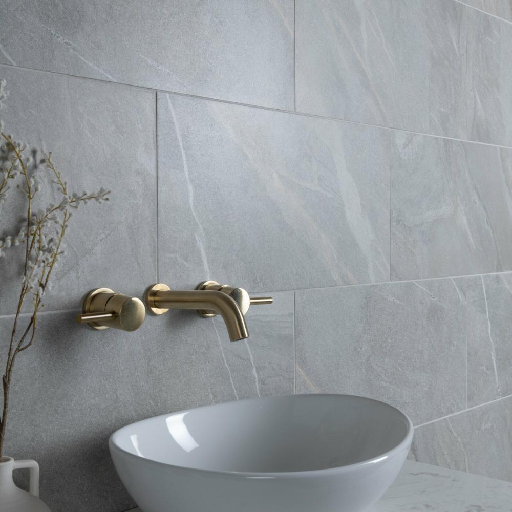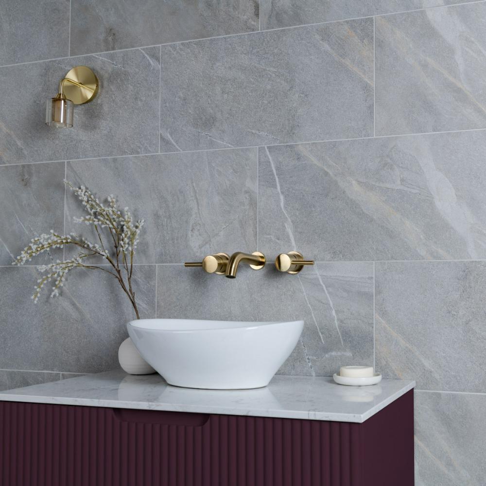 The Granby Beige tile features a genuine replication of real stone with natural, varied veining and warm multi-tonal colouring across a beige palette. Ideal for interior wall and floor designs, this porcelain tile boasts a natural matt finish with a 597x297mm format, 7mm thickness, 24 face variations and rectified edges for a seamless overall look. These tiles have a PTV 36+ rating, suitable for use across wetrooms/bathrooms.