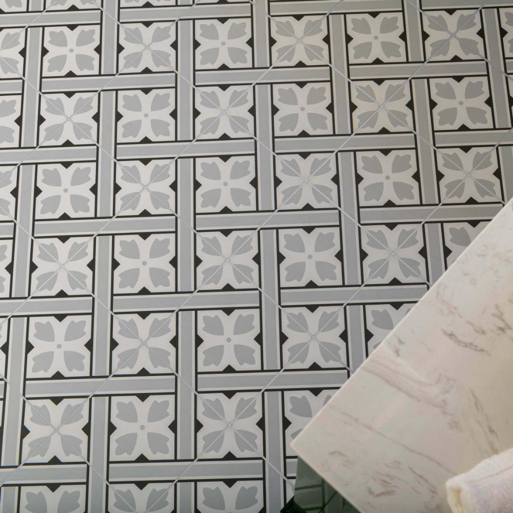 Welcome the Mr Jones Grey tile, featuring a vintage-style floral pattern in elegant multi-tonal grey, perfect for making a statement in any interior space. With a matt finish, this ceramic tile is ideal for both walls and floors, offering a single-face variation for a uniform look that is especially stunning in spaces like the hallway, kitchen and bathroom!