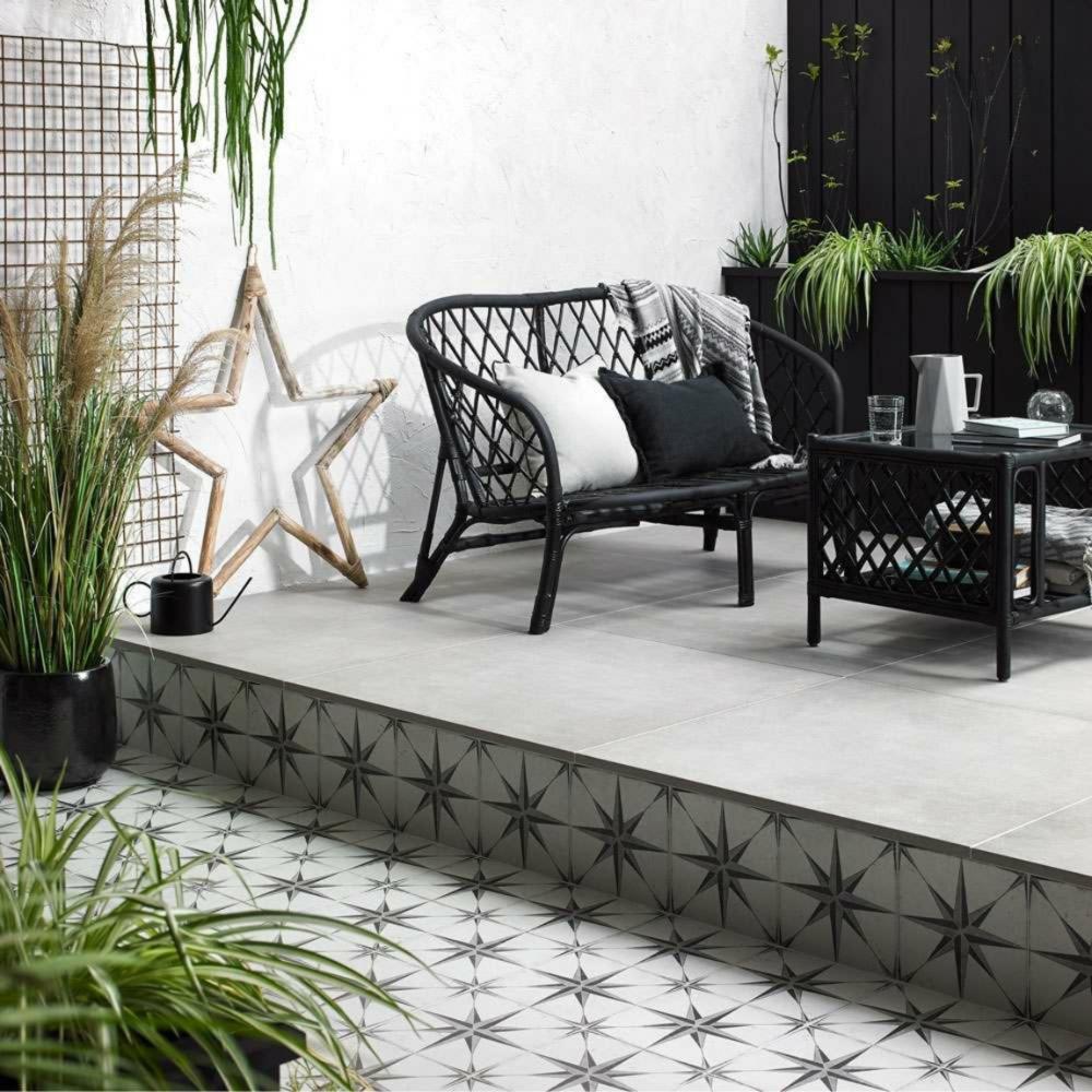 Discover the elegance of Open Antracite, a luxurious porcelain tile that mimics the beauty of dark grey stone with its realistic design and matt finish. Perfect for creating a sophisticated outdoor space, this 800x800mm square tile boasts a 20mm thickness, rectified edges and an R11 anti-slip rating, ensuring both style and safety for your exterior floors.