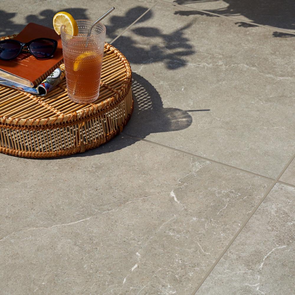 Discover the elegance of Pulse Bone tiles, boasting a luxurious cream stone effect on a sturdy porcelain construction. Perfect for outdoor spaces with the R10 anti-slip rating, these matt finish tiles come in a generous 595x595mm format, 20mm thickness and feature rectified edges with 15 unique face variations, blending style with practicality.