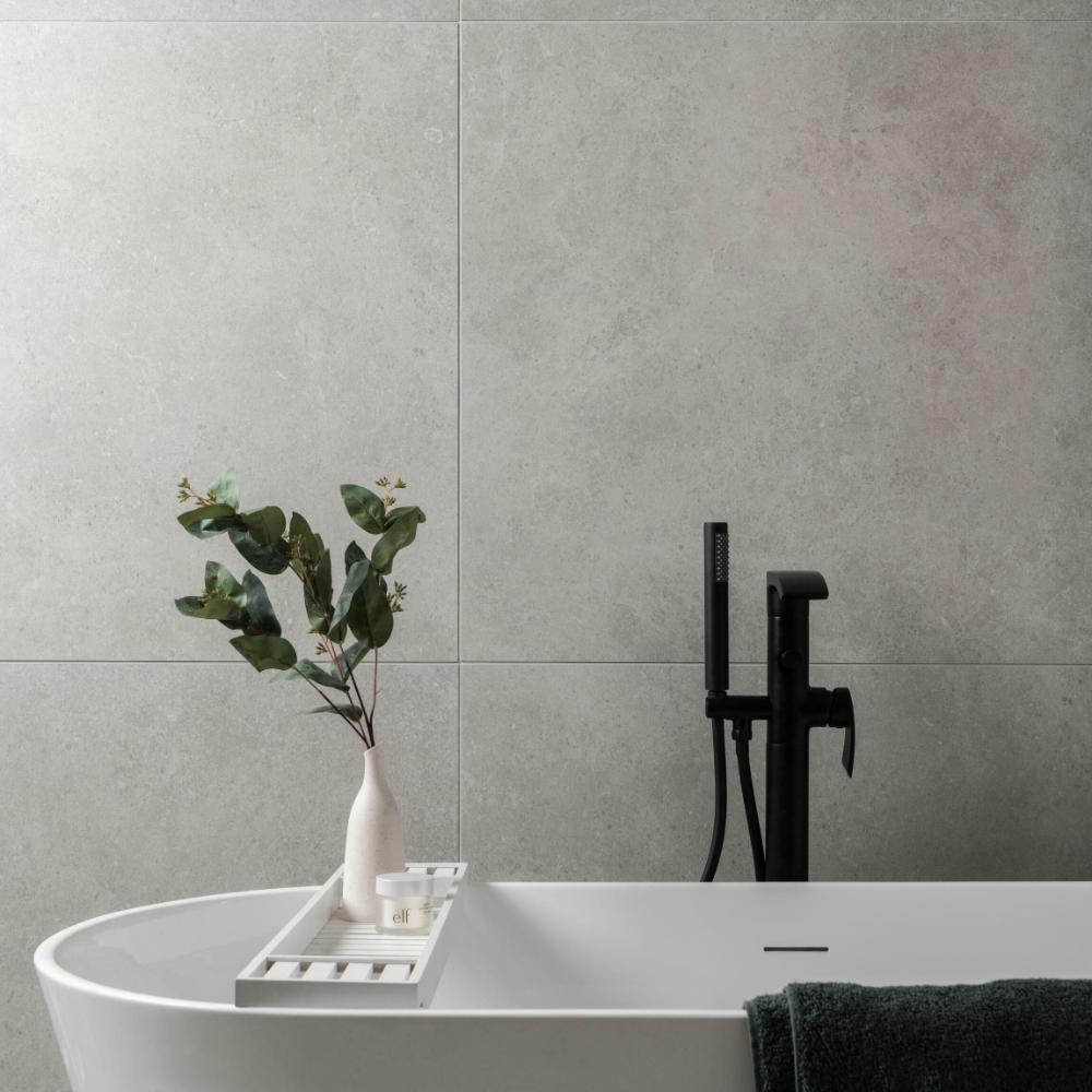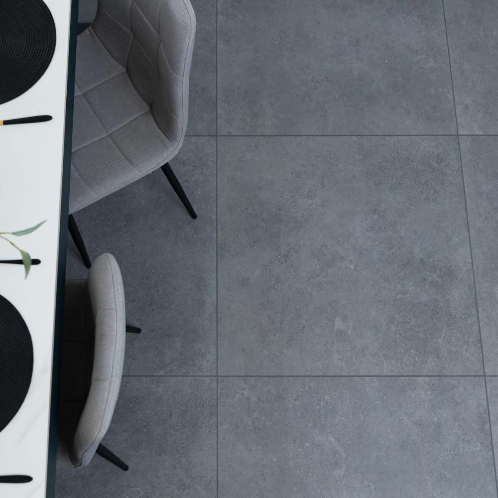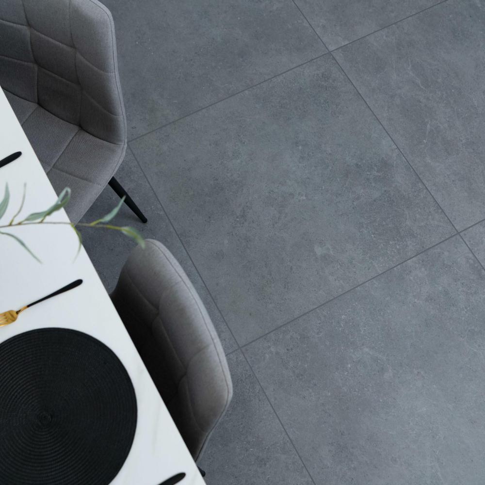 Introducing the Sovereign tile, featuring a dark anthracite grey stone effect with multi-tonal detailing, perfect for adding a sophisticated touch to any space. This versatile 800x800mm porcelain tile is suitable for both walls and floors, offering durability with its 10mm thickness.