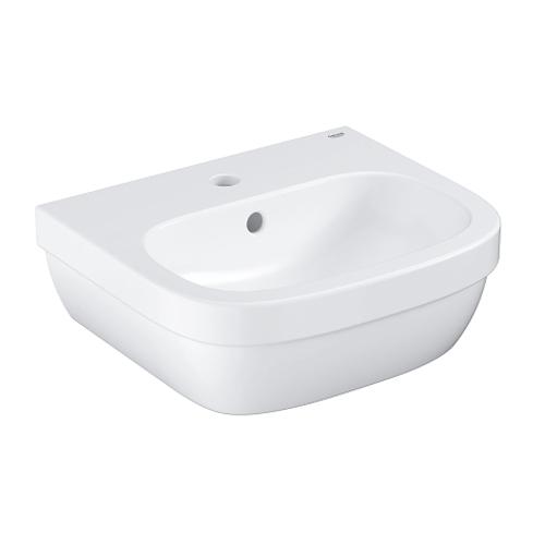 Designed to meet modern demands for compactness, visual elan and convenience, this super-neat GROHE Euro Ceramic cloakroom Wash basin 45 combines chic styling with the latest high-tech surfaces. This modern wall-mounted basin measures a generous 450mm x 400mm.
