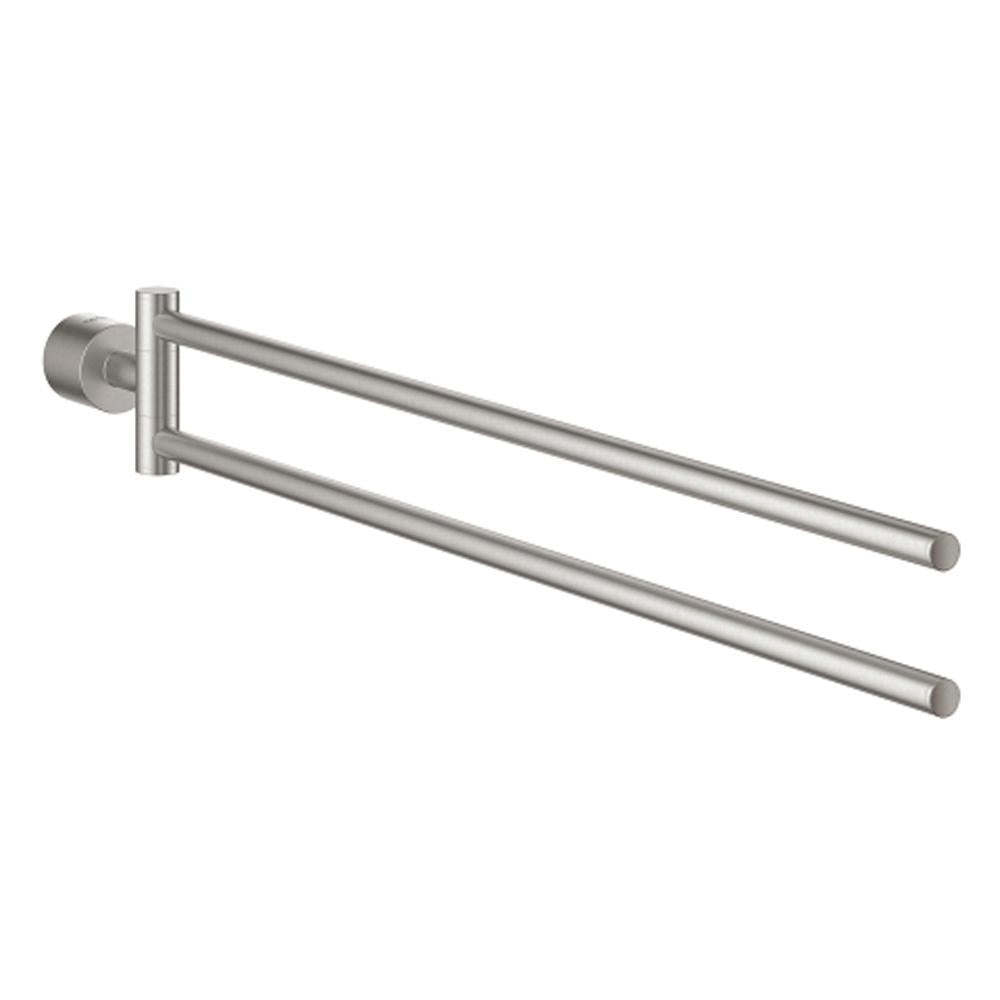 With Grohe Atrio's comprehensive collection of beautifully made fittings and complementary accessories, it's never been easier to create a seamless bathroom design. The sophisticated Grohe Atrio double towel bar, which has concealed fastening to ensure a beautiful finish, has a timeless design and is crafted from the finest materials. Just add your favourite towels for a seamless look in any classic or contemporary bathroom. It also features long-lasting Grohe Star Light chrome has a long-lasting finish that will sparkle for years. And with the clear step-by-step instructions, it is quick and easy to add a designer accessory that makes life in the bathroom even more convenient and comfortable. Ideal for towels up to 489mm. And take a look at the matching robe hook, towel Rail or ring, toilet paper holder and brush set.