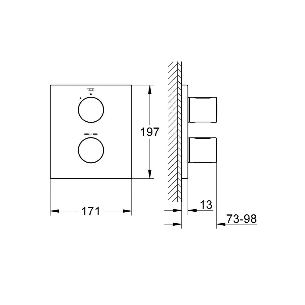 ( calibration required ) - GROHE SafeStop Plus optional temperature limiterat 43°C included
