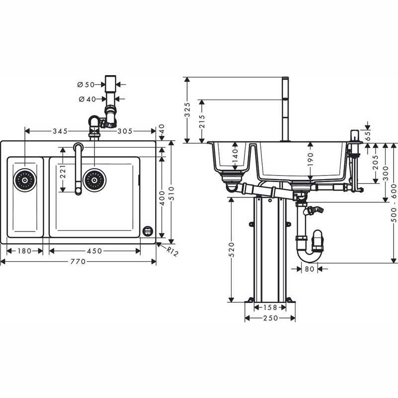 - Consists of: built-in sink, 2-hole single lever kitchen mixer, control unit, hose box, manual waste and overflow set