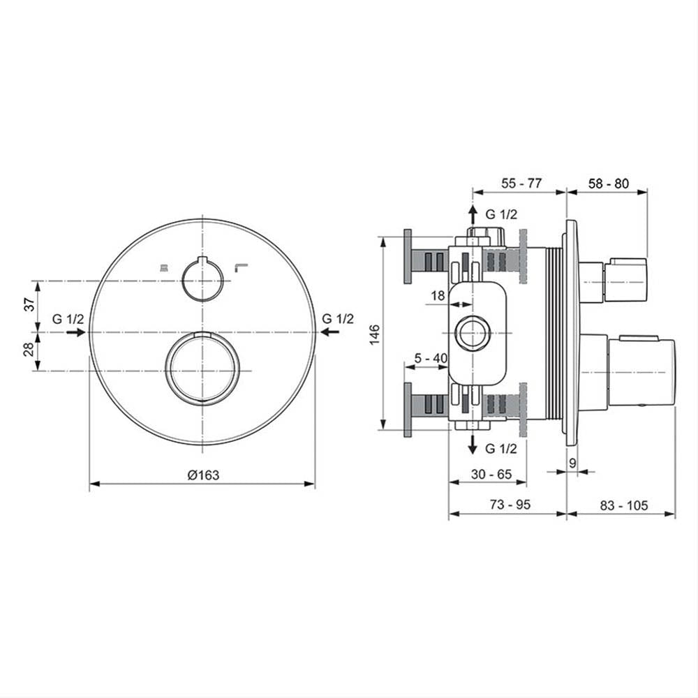 Ideal Standard Ceratherm T100 Built-In Thermostatic 2 Outlet Shower Mixer