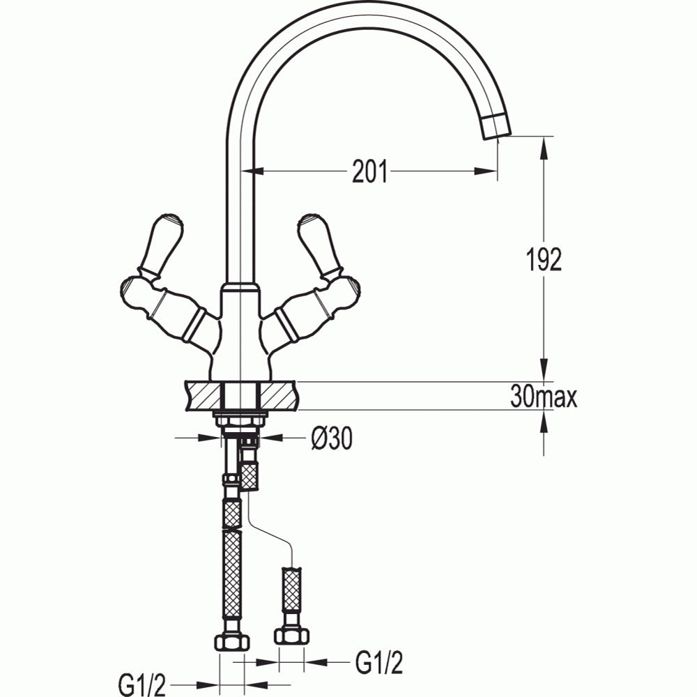 Traditional two handle swivel spout kitchen mixer