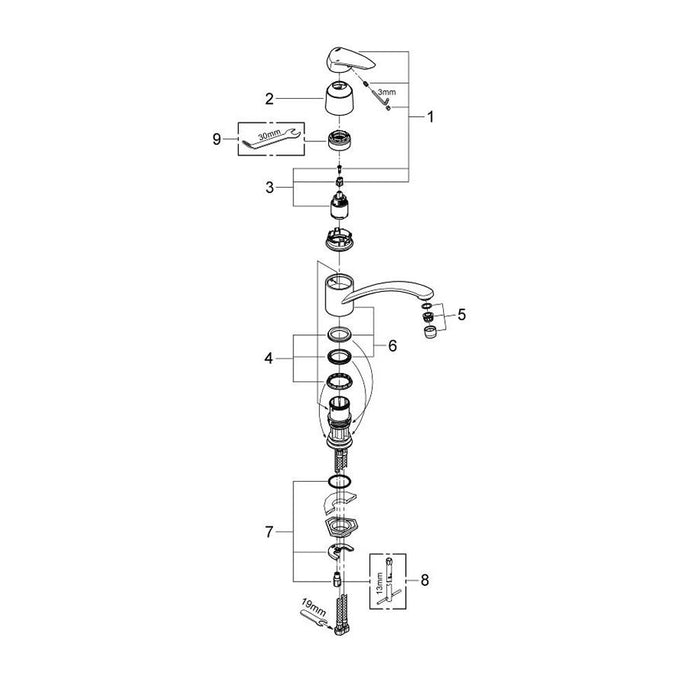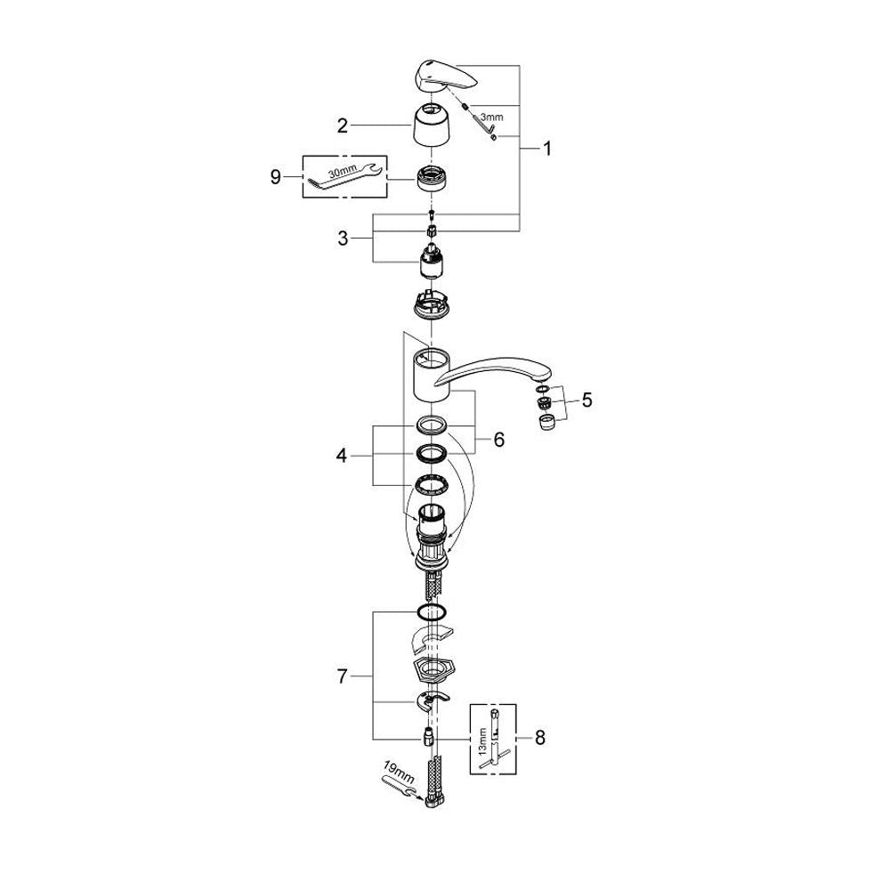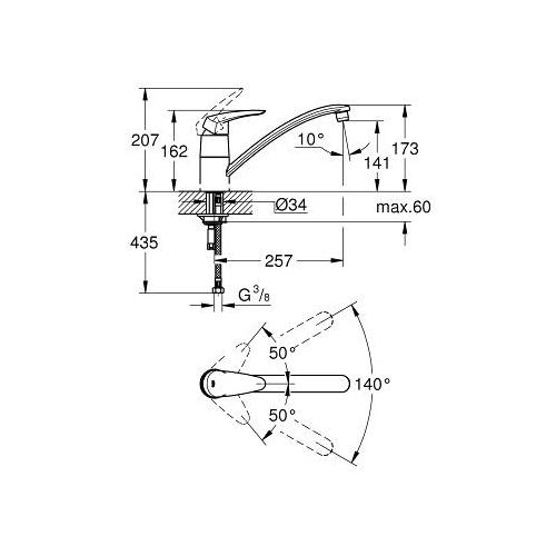 Maximum 140° turn lets you place your taps with confidenceFor the slightly narrower or boxed-in kitchen sink or bathroom basin. The tap has the classic smooth GROHE action but wont turn beyond 140°, so you can fit your sink or basin into a tight spot with complete peace of mind.