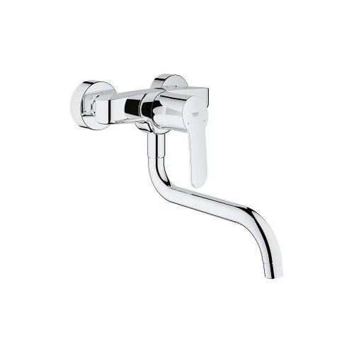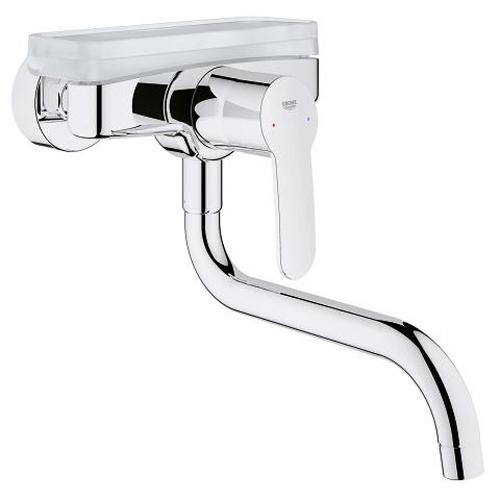With the hard-wearing GROHE StarLight chrome finish, this kitchen tap of the Eurostyle Cosmopolitan range will be a dazzling highlight in your kitchen. Specifically designed for wall-mounting, it incorporates a variety of convenient functional features. The spout can be locked in position (0°) or set to swivel in a 150° radius as appropriate. With the integrated GROHE SilkMove technology, water temperature and volume can be adjusted smoothly and effortlessly. The GROHE plastic tray (18383002) is a convenient accessory to the sink mixer. Resting on the horizontal top surface of the tap, it is easy to attach and provides enough space to keep your dish soap and kitchen sponge handy.