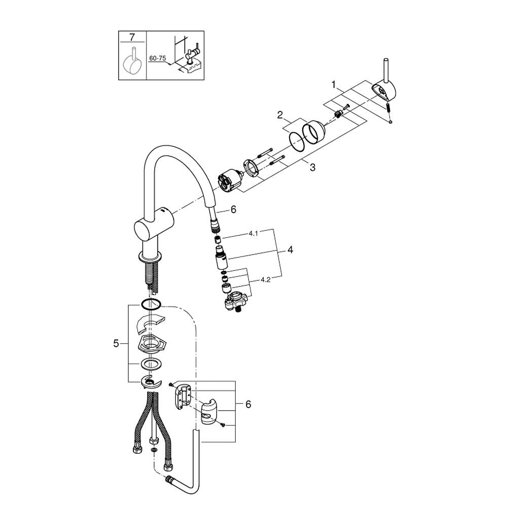 For filling big heavy pots or cleaning the sink youll need the flexibility of the GROHE pull-out shower head. Pull down then press the button and you get a fine spray for cleaning or rinsing. Switch back and you have the power to jet-wash your kitchen sink. As soon as you turn off the tap the head resets itself to fine spray - so no sudden deluges. Enjoy professional convenience and performance in your kitchen at home.