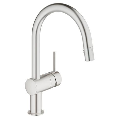 This GROHE sink mixer will make light work of your kitchen chores. With its attractive minimalistic design and convenient features, it is a perfect match for any kitchen. It comes with a high spout that swivels in a 360° range to maximize your operating radius, which is ideal if you've got a sink with two basins or wish to fill several pots in succession. The pull-out shower head will reach all corners of your basin without difficulty. To wash fruit or clean the basin, you can easily switch between a fine spray jet and a powerful shower jet. Water volume and temperature control are continuously variable with a lever that moves super smoothly thanks to the integrated GROHE SilkMove technology.