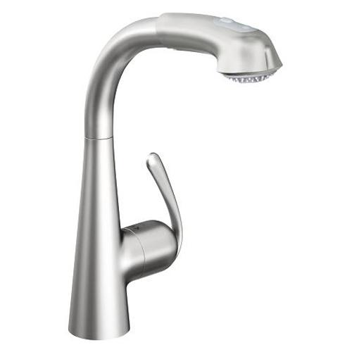 Enjoy the benefits of this GROHE Zedra premium tap and you'll be done with your kitchen chores in the blink of an eye. The high spout comes in handy when working with high pots and kitchen pros especially love the pull-out comfort spray head. It gives you a choice of two spray types: a fine spray jet and a powerful shower jet. Opting for the GROHE Zedra is a sign of your good taste. With its fluid shapes and extraordinary lever design, it's a real eye-catcher in your kitchen. The chrome coating is very easy to clean and adds great aesthetic appeal. And what's more, thanks to the easy installation system, you'll have the tap mounted in just a few simple steps.
