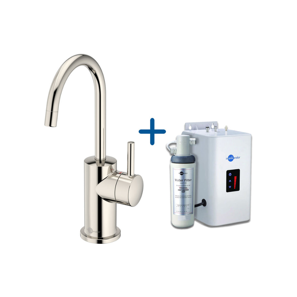 - A contemporary InSinkErator FH3010 tap in brushed steel with a brushed finish