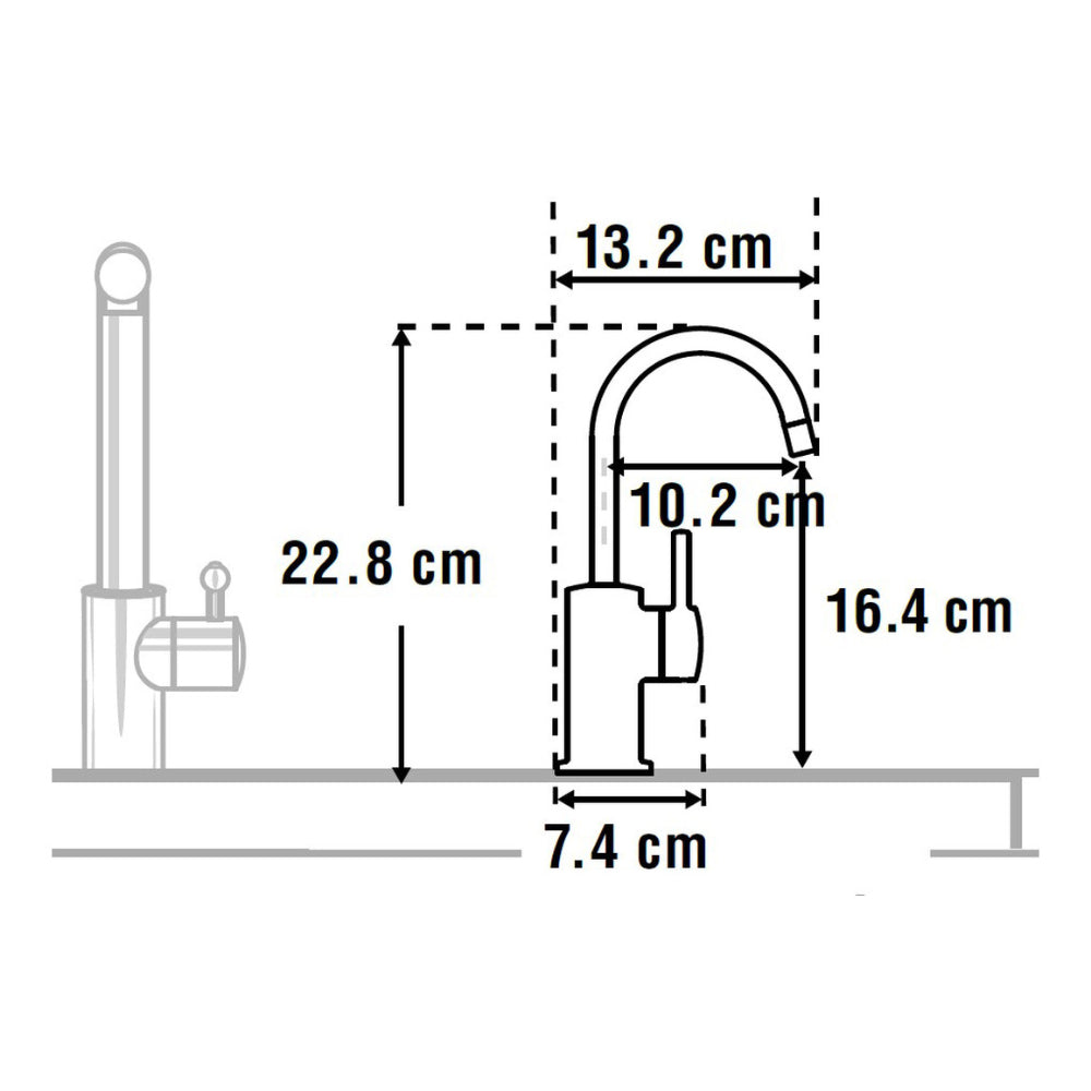 - Tap Dimensions: Overall Height - 228mm; Spout Height - 164mm; Spout Reach - 132mm; Base/Handle Width - 74mm