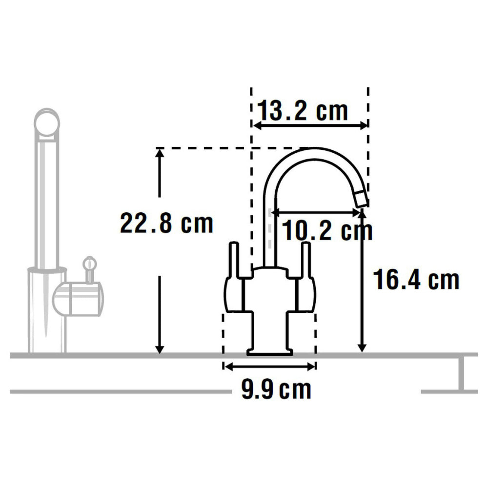 - Tap Dimensions: Overall Height - 228mm; Spout Height - 164mm; Spout Reach - 132mm; Base/Handle Width - 99mm