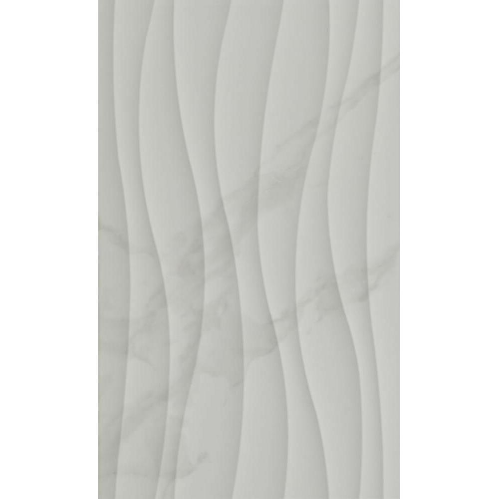 Introducing the Nairobi tile, which offers an elegant marble effect in white with subtle grey veining across 8 face variations, complemented by a distinctive 3D wavy surface that adds texture and depth. This ceramic tile, perfect for interior walls, comes in a matt finish and a convenient 550x333mm format with 10mm thickness, blending style and durability seamlessly.