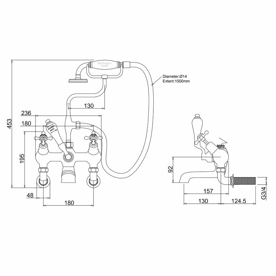 - T9: Angled bath shower mixer (Including the standard cradle, 'S' adjuster, Claremont, Anglesey & Birkenhead divertor handle, hose, ceramic telephone handset , excluding tap heads, base and unions)