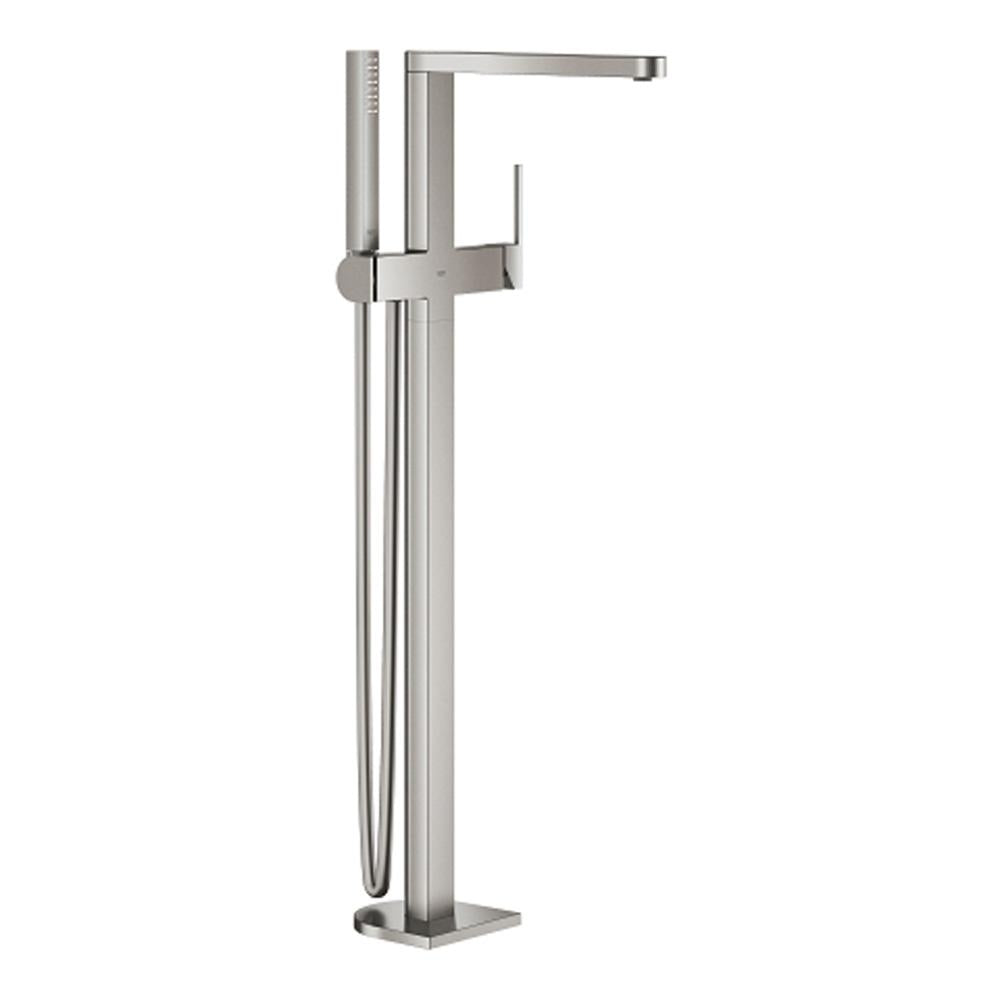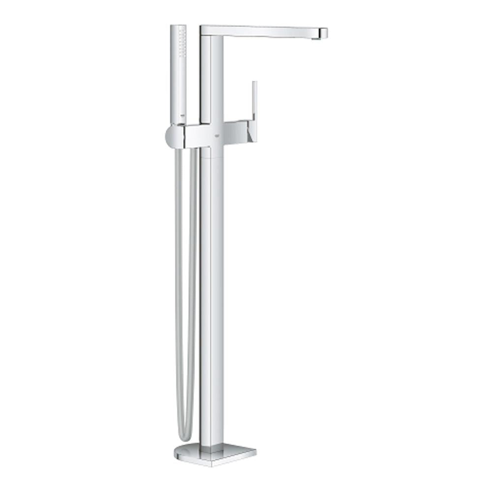 GROHE Plus freestanding bath mixer with Euphoria Cube+ Stick hand shower - a clean-lined, modern pillar tap designed for freestanding baths