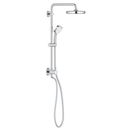 The GROHE Retro-fit 210 shower system adds designer style and performance to any bathroom. Ideal for renovation projects, it installs easily as you only replace the existing shower arm and add the system components without altering any in-wall plumbing. Once installed, its easy to use; It is also packed with GROHEs cutting edge technology. Innovative GROHE EcoJoy technology limits water usage in both the head and hand shower - to 9.5l/m and 5.7l/m - but still guarantees complete showering satisfaction. GROHE DreamSpray ensures the flow of water from every nozzle is even - perfect for the new Tempesta 210mm head showers soothing Rain Spray. The 450mm arm of the head shower even swivels through 180° for added flexibility. The New Tempesta Cosmopolitan 100mm hand shower has a 1500mm TwistFree hose and two sprays to suit your mood: a soothing Rain Spray and the revitalising Jet Spray. The handy SpeedClean nozzles means it is easy to keep free of dirt and limescale! The multilayered coating of scratch resistant GROHE StarLight chrome has a sparkle that lasts for years and the Inner WaterGuide prevents the surface of the shower from getting hot. The GROHE Retro-fit 210 shower system - showering perfection at an attractive price!
