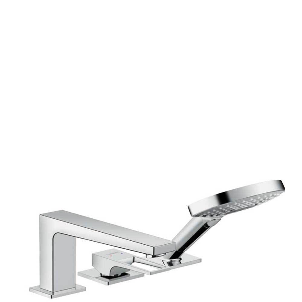 - Consists of: 3-hole rim-mounted single lever bath mixer, hand shower, shower holder, shower hose