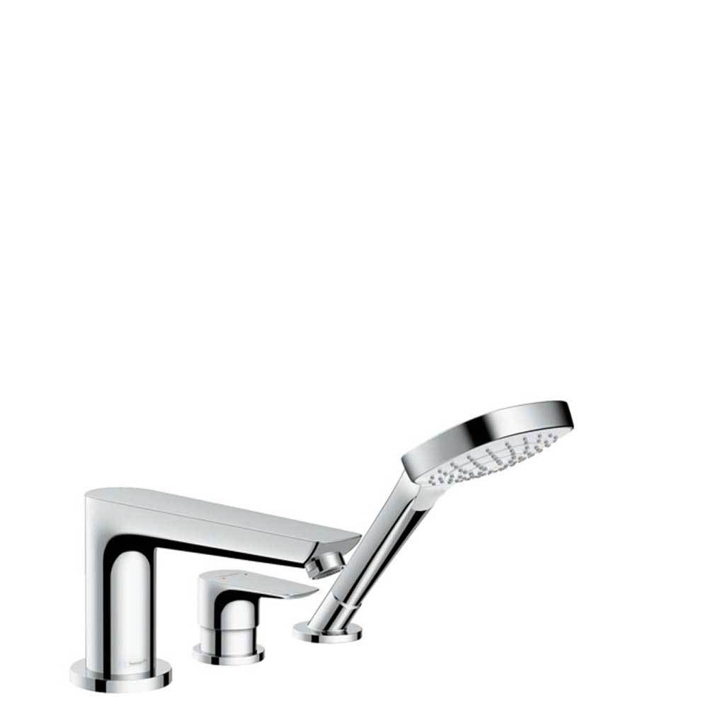 • Consists of: 3-hole rim-mounted single lever bath mixer, hand shower, Secuflex hose set
