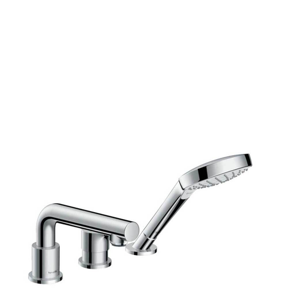 - Consists of: 3-hole rim-mounted single lever bath mixer, hand shower, Secuflex hose set