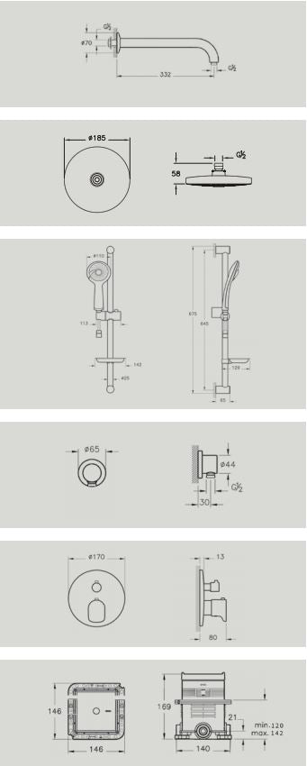• X-line 2 outlet shower set with: V box, X-Line shower valve, Samba handshower with slide rail kit , Rain L showerhead, shower arm and wall union. - Chrome