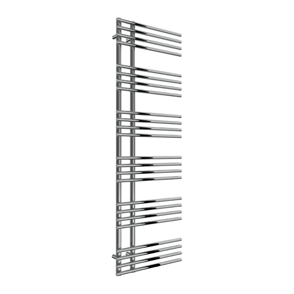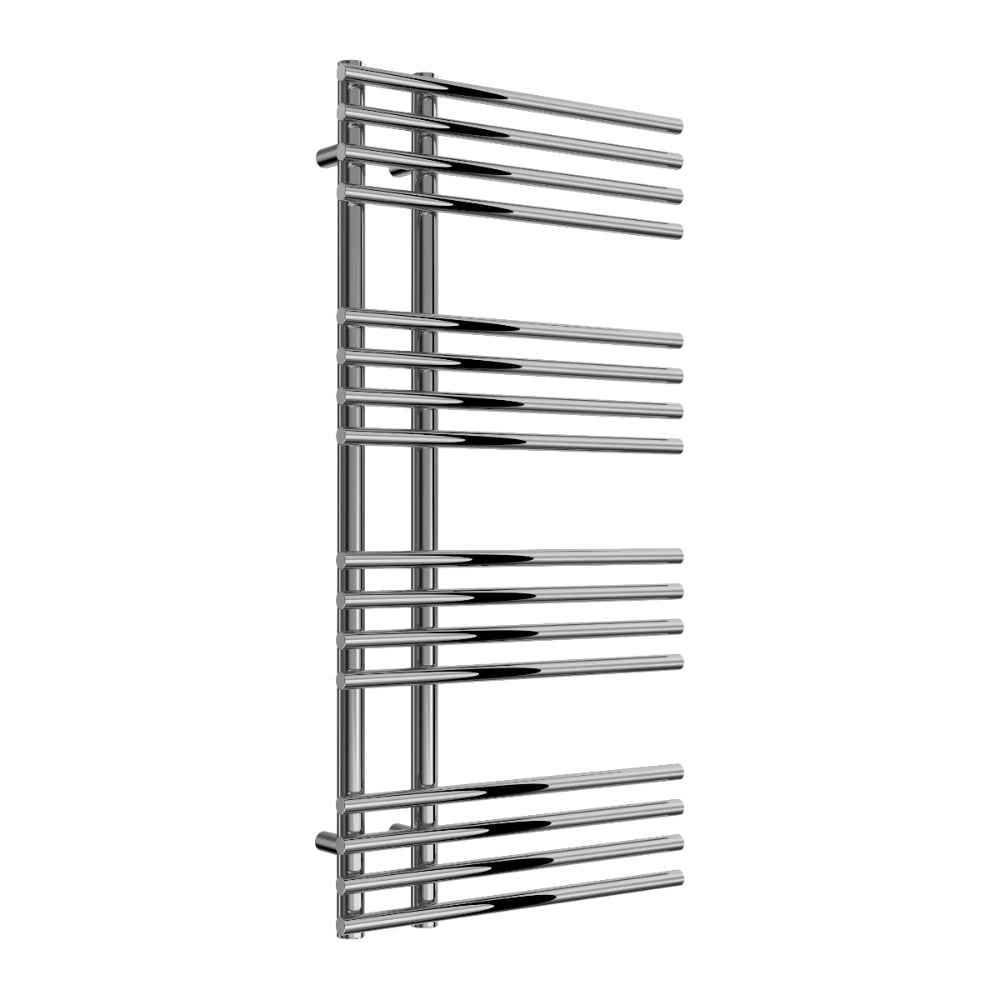 The Reina Elisa Towel Radiator, a stylish fusion of premium mild steel and modern design available in chrome or black finishes. With versatile heights from 1000mm to 1550mm, a width of 500mm, and a powerful heat output of 2269 BTU to 5117 BTU, it offers exceptional warmth and elevates any contemporary space.