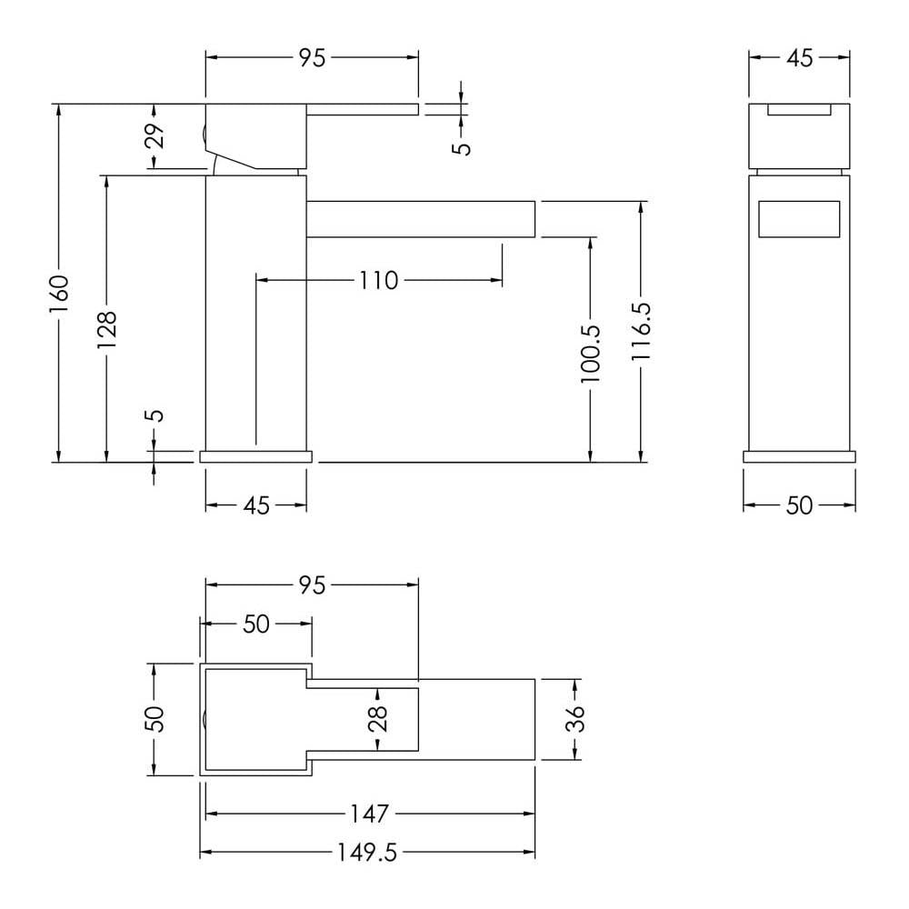 Nuie Sanford Mono Basin Mixer with Push Button Waste
