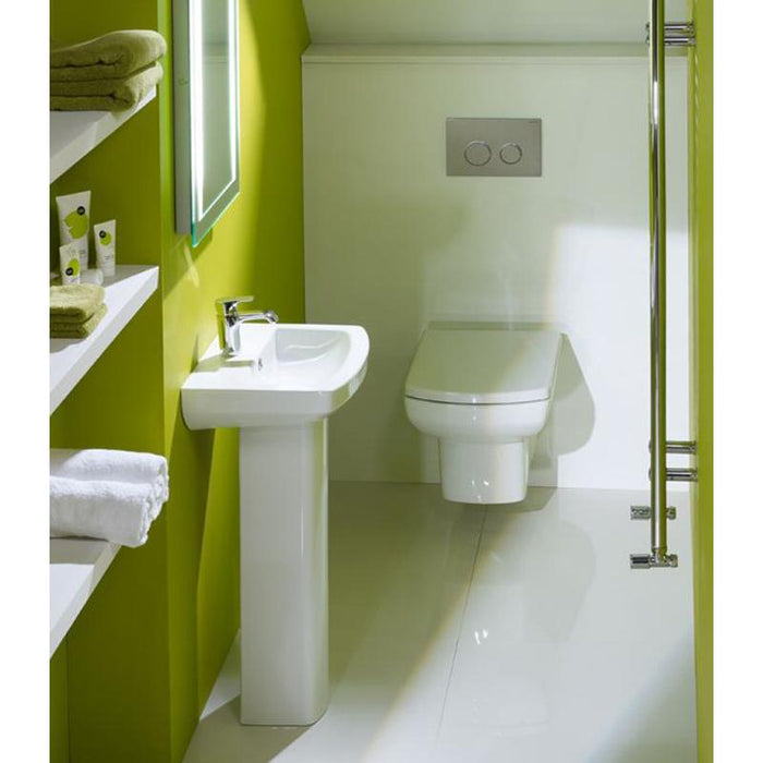 The modern Vibe basin is paired with a contemporary Vibe full pedestal and Vibe semi pedestal. With a projection of 340mm the Vibe 460mm basin is the ideal solution for any small bathroom, cloakroom or ensuite.