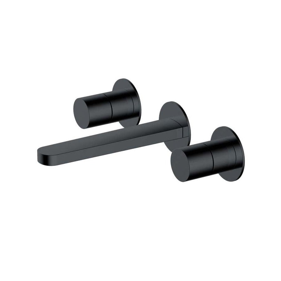 RAK Ceramics Petit Round Wall Mounted 3 Hole Basin Mixer - Matt Black