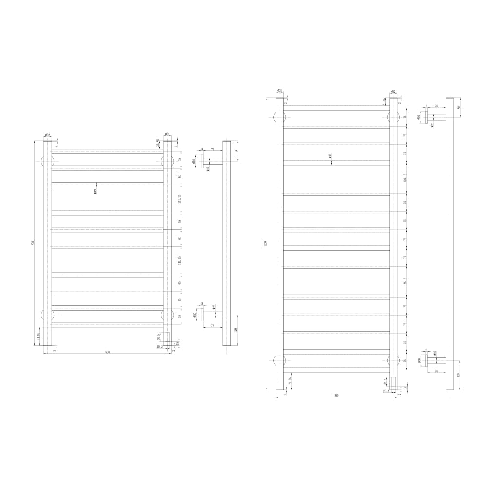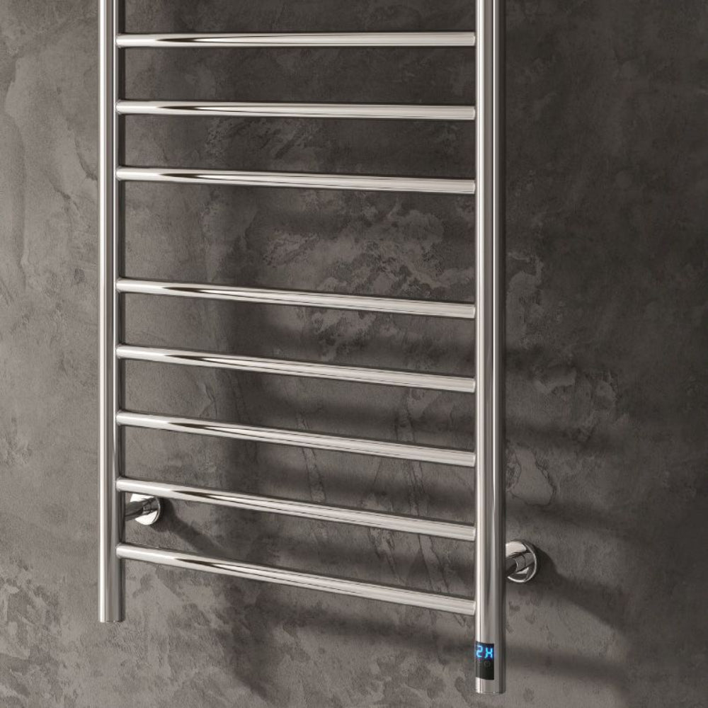 The Arnage Dry Electric Ladder Heated Towel Rail combines sleek design and functionality with concealed wiring, exceptional heat output, and versatile color options. Crafted from stainless steel, it features a convenient timer function with 2, 4, and 24-hour settings and places the controls and cables neatly at the bottom right.