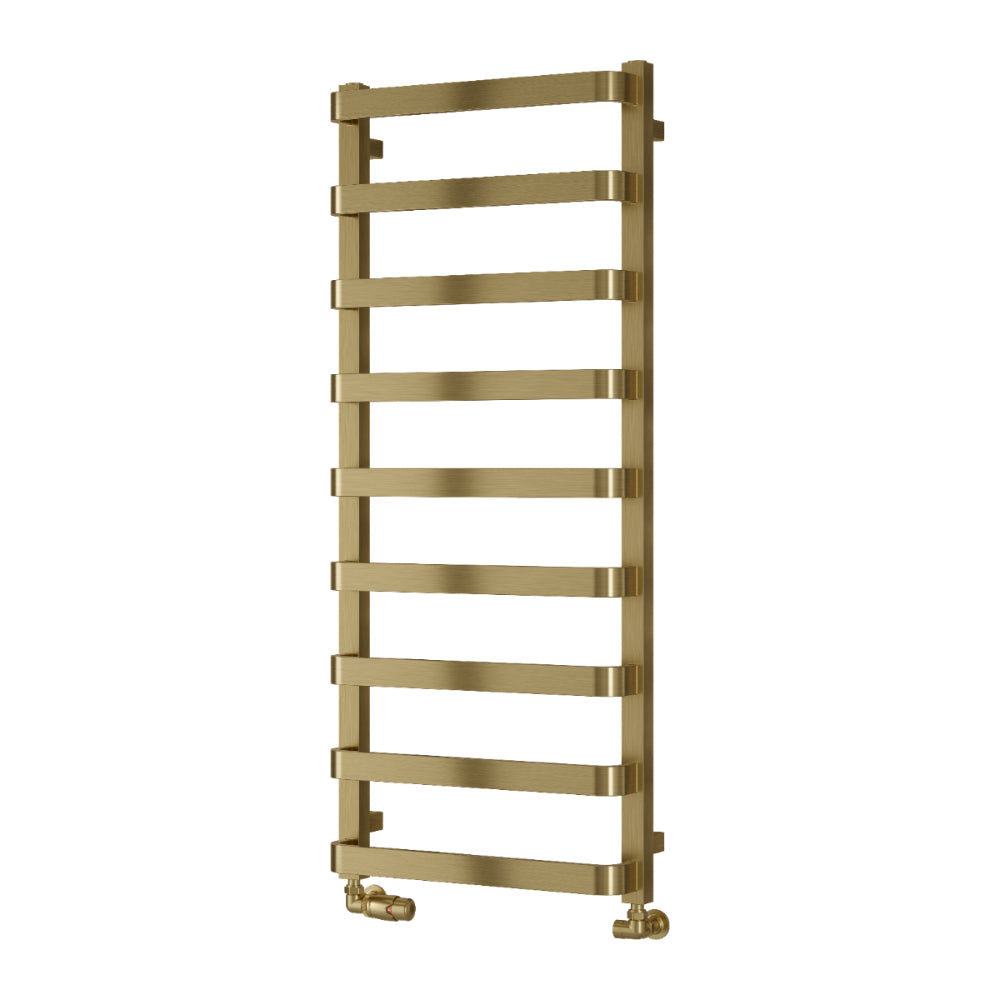 The Flora Ladder Towel Radiator blends modern design with premium functionality. Featuring a unique hybrid square and rounded design with evenly spaced bars, it ensures optimal warmth and style. Crafted from durable steel in a choice of brushed brass or brushed gunmetal finishes, it delivers superb heat output while adding a touch of luxury to any bathroom. Backed by a 5-year guarantee, it's the perfect fusion of elegance and performance.