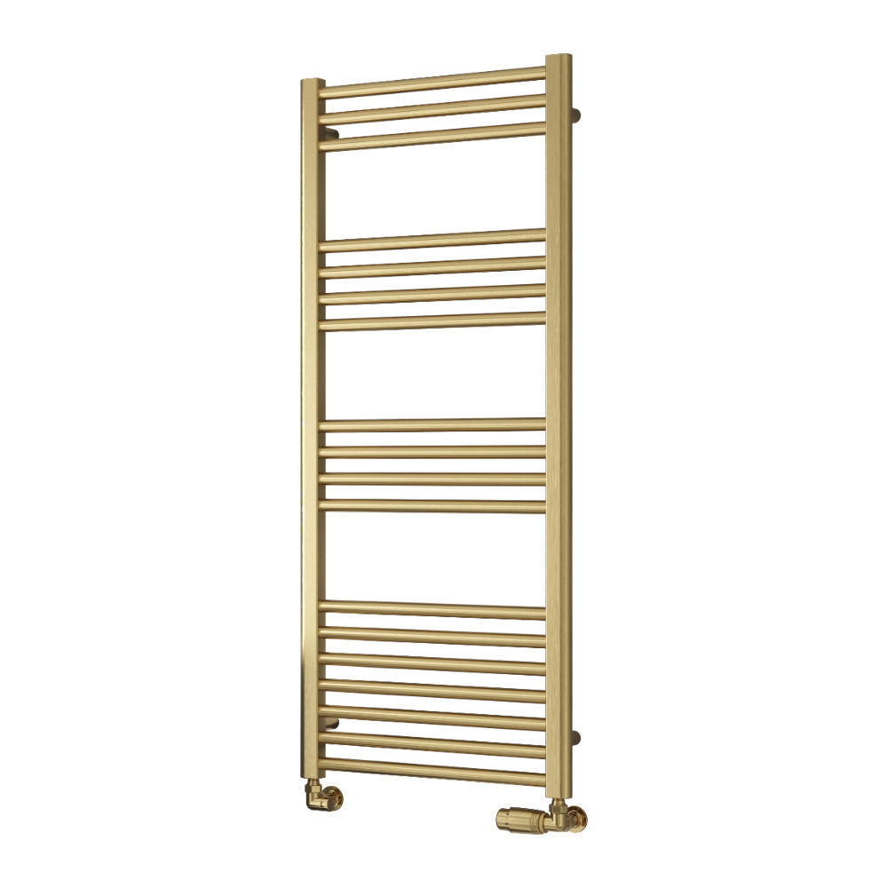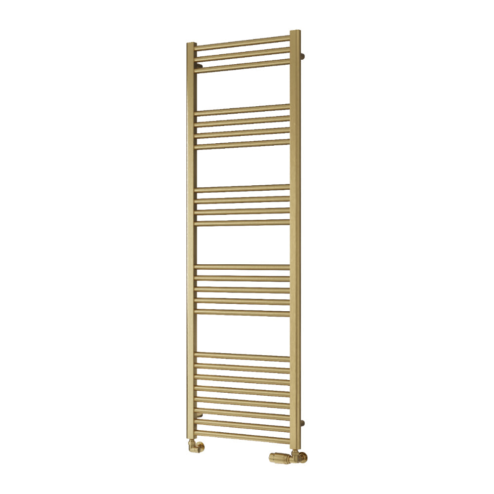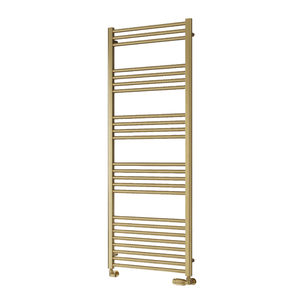 The Reina Ottone Towel Radiator combines modern elegance with practical functionality, crafted from durable mild steel with a luxurious brushed brass or gun metal finish. Available in various sizes (800mm to 1600mm high and 500mm to 600mm wide), it suits any space while delivering a heat output of 1081 BTU to 2371 BTU, keeping your towels warm and your home inviting. Upgrade your decor effortlessly with the Reina Ottone.