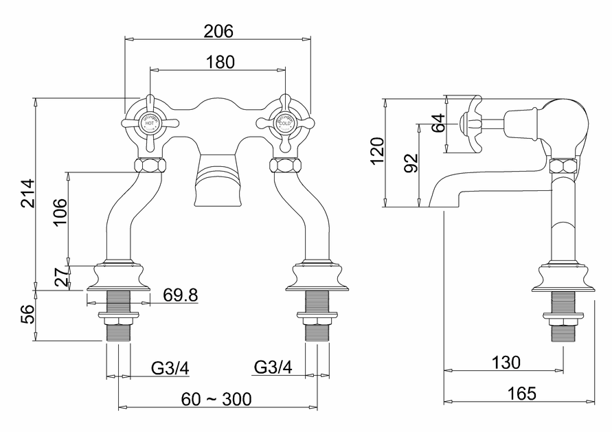 - Finish: Chrome, Gold, Nickel