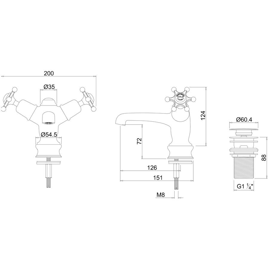 | Colour | T12: Tap - Chrome plated T12-QT: Tap - Chrome plated T13: Tap - Chrome plated T13-QT: Tap - Chrome plated T2: Tap handles - Chrome plated T4: Tap handles - Chrome plated W11: Waste - Chrome plated T4B: Regent tap base - Chrome plated |