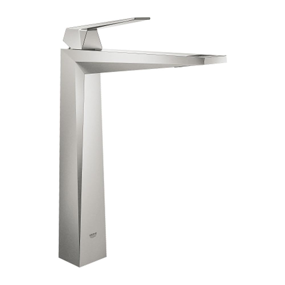 For a tap that fits perfectly with today's chic freestanding vessel basins, this XL GROHE Allure Brilliant basin mixer is the obvious choice. The crisp, facetted silhouette of the tap is inspired by the beautiful natural geometry of a diamond, creating a sophisticated, sparkling design highlight for your scheme. Operation is via a tactile, solid metal single-lever handle and the tap has an extra-high spout and a sleek, smooth body. Inside, long-lasting, precise and accurate control is ensured by the GROHE Silk Move ceramic cartridge. For more eco-conscious performance, GROHE Eco Joy limits the flow to 5.0 l/min without compromising on performance. GROHE Quick Fix makes fitting this tap easy, swift and straightforward. The beautiful, durable, GROHE Star Light chrome finish will keep its pristine looks for years.