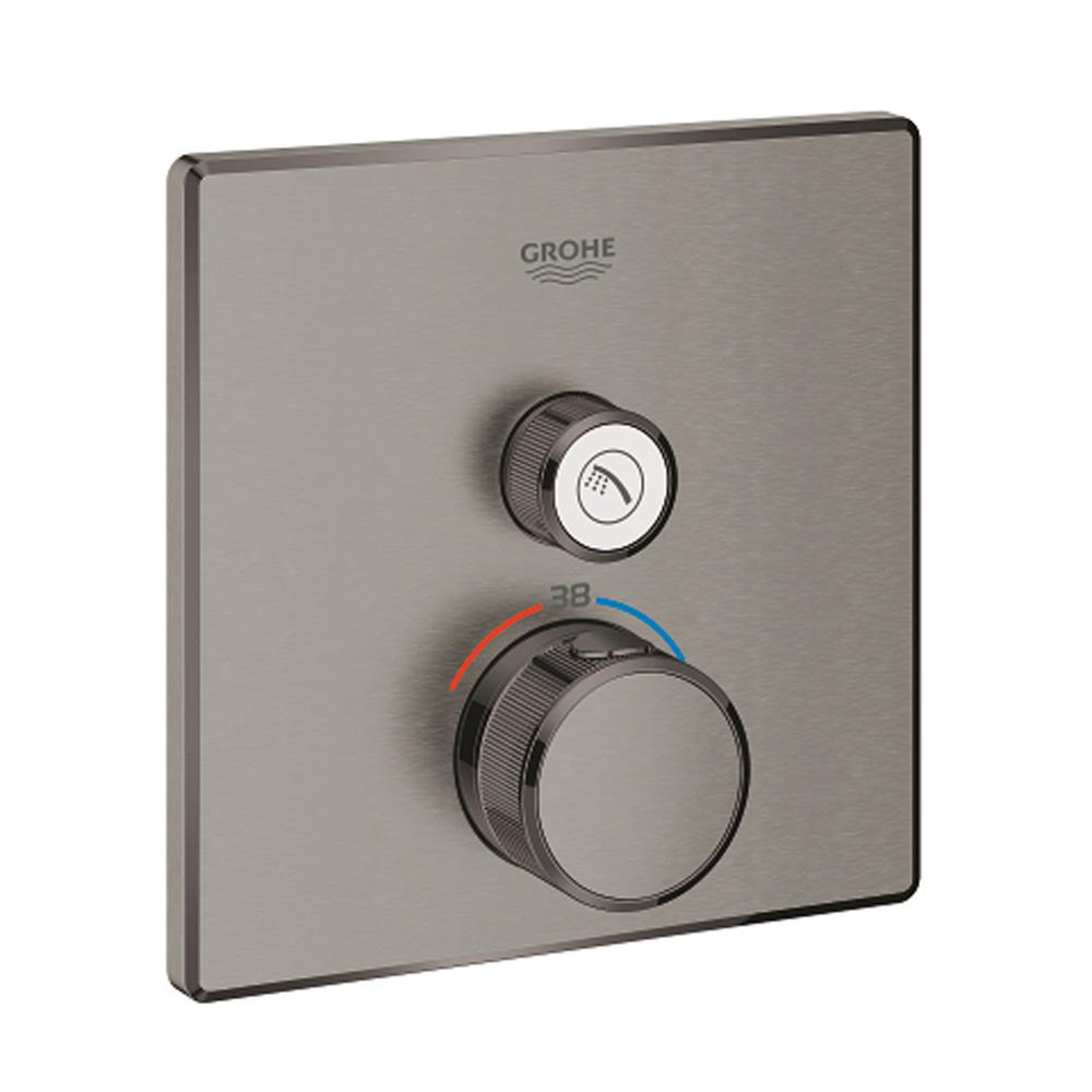 The Grohtherm Smart Control concealed thermostat puts you in charge of your cleansing regime by bringing precision and ease of use to the bathroom. Designed not just for chic styling but also unrivalled precision performance, its innovative Smart Control technology allows you to adjust the water volume at the push-turn of a button. Integrated Grohe TurboStat technology prevents any unpleasant temperature fluctuations. Grohe EasyLogic markings and textured buttons with exchangeable symbols make it easy and intuitive to use. Family-friendly, the Grohe SafeStop override button allows you to set a maximum temperature of 38° C to prevent scalding - the Grohe SafeStop Plus optional temperature limiter lets you add a further limit of 43° C for an extra level of safety. Water-saving Grohe EcoJoy technology gives you the option of a reduced flow rate with no compromise on enjoyment. Thanks to the Grohe Quick Fix System it's swift and straightforward to install. The slim profile makes it easy to keep clean, and the hardwearing Grohe Star Light finish will maintain its flawless looks using physical vapour deposition (PVD) for an extra level of scratch-resistance. with a slim, square design perfect for that minimalist, streamlined look, this product is bound to enhance your bathroom scheme. Please note that this product must be installed in combination with the Grohe Rapido Smart Box (35600000).