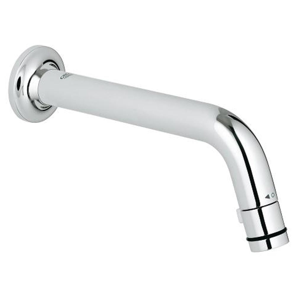 This practical Universal lavatory Tap is designed for wall-mounting and is the essential addition for washing your hands in the toilet. The spout is 185mm and suitable for the smaller sink. Its shiny Grohe Star Light chrome makes the Tap a striking appearance, despite its size. This Protective layer is easy to keep clean and because you can open and close the Tap with a handy twist mechanism at the tip of the spout, your contact with the Tap is kept at a minimum. For optimal hygiene.