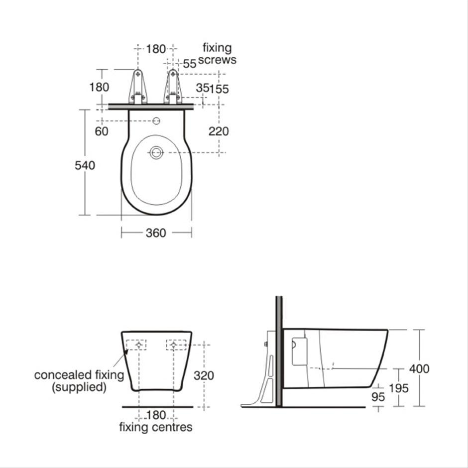 E0060 support brackets secured to floor within the duct, bidet fixed to support brackets with bolts supplied and bolts screwed to back wall with brackets. Joints sealed with waterproof sealant (not supplied). Consideration should be given to safe hot water delivery and the use of an appropriate temperature reduction device see A5900AA or Part G for guidance.