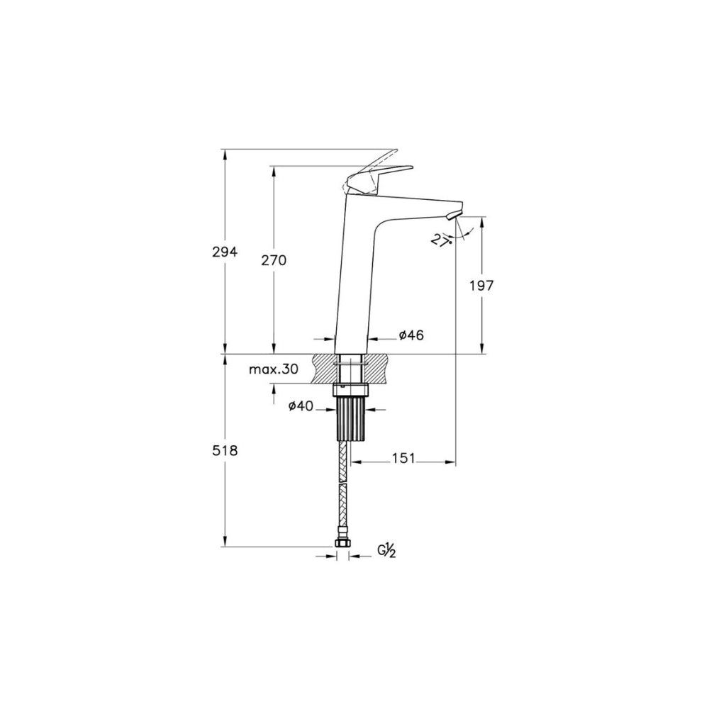 - Low Pressure Deck Mounted Chrome Basin Mixer