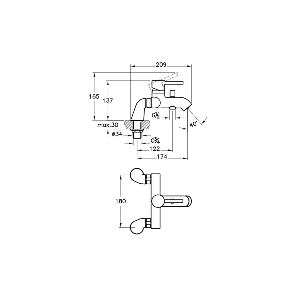 - Low Pressure Deck Mounted Chrome Bath/Shower Mixer