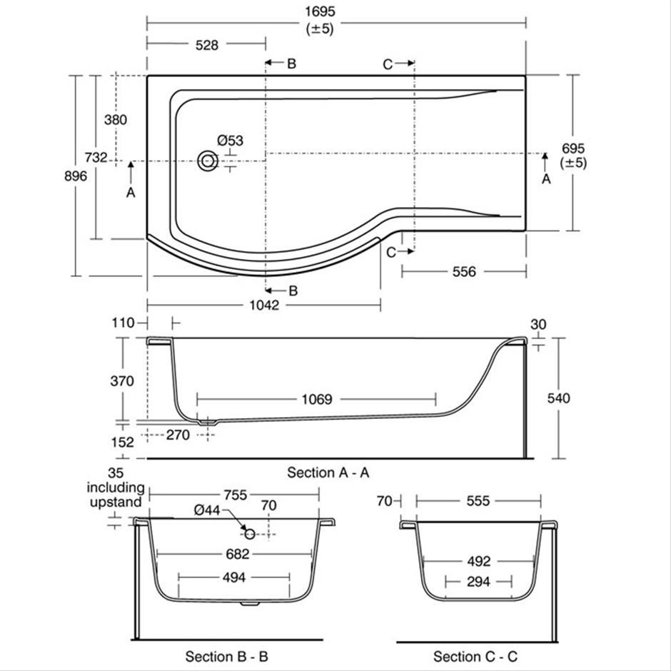 The gently sloped ergonomic interior design matched to the extensive contemporary Concept range, this spacious shower bath has matching Concept shower screen.