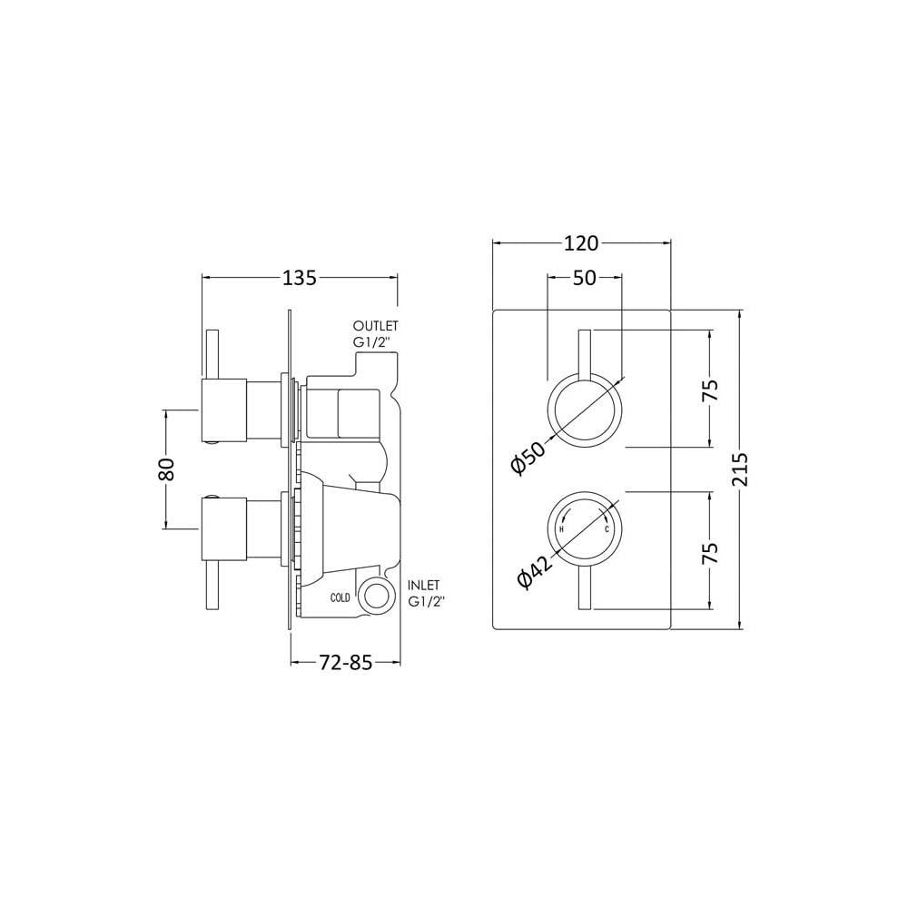 Description of Quest Twin Thermostatic Shower Valve Rectangular Plate with Diverter